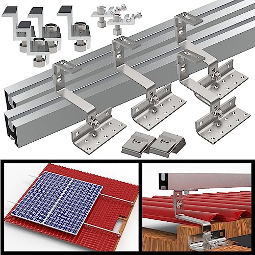 Montage-Set aus wetterfestem Edelstahl und Aluminium • Ideal für alle Solarpanels bis ca. 1.150 mm Breite • Unterstützt Solarpanel-Rahmenstärke von 30 bis 35 mm • Für alte und neue Dächer geeignet: dank ausrichtbarer Halterungen • 14-teiliges Dachmontage-Set für ein Solarmodul • Unterstützte Solarmodul-Breite: bis ca. 1.150 mm • Gewicht: 4,5 kg • Geeignet für neue und alte Ziegeldächer • Unterstützte Solarmodul-Rahmenstärke: 30 bis 35 mm • Dachhaken über 2 Gelenke ausrichtbar: gleichen Unebenheiten in der Dachkonstruktion aus • Material: Aluminium und Edelstahl • Set bestehend aus 2 Aluprofilen (je 1.200 mm), 4 Dachhaken mit je 3 Schrauben (6,3 x 80 mm), 2 Erdungshalterungen, 4 Endhalterungen, 2 Kabelclips und deutscher Anleitung. Montageset Photovoltaik Ziegel – Außerdem relevant oder passend zu: PV Halterung, des • Bei Einzelbestellung senden wir den Artikel direkt im versandsicheren & versandoptimierten Original-Produktkarton. Das spart Verpackungsmüll und schont die Umwelt.