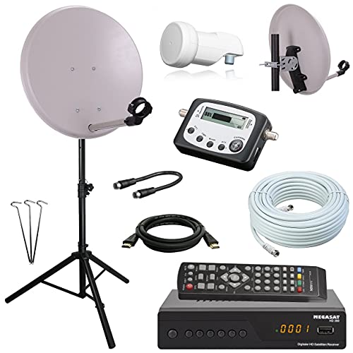 netshop 25 Digital Camping SAT Anlage 40 cm Spiegel + HD Receiver + Digitaler SAT Finder + HD Single LNB + 10m Kabel + Dreibein-Stativ