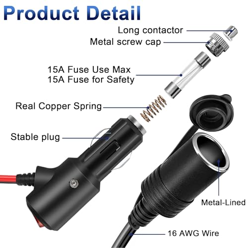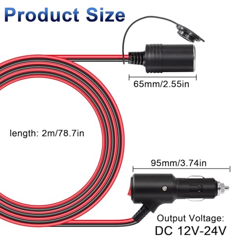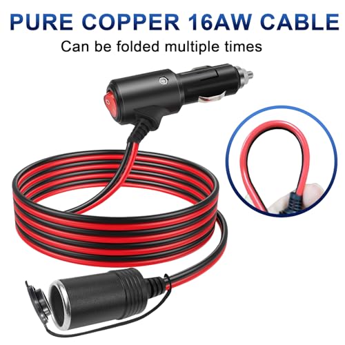 Verlängerungskabel: Das Zigarettenanzünder-Verlängerungskabel ist 2 Meter lang und mit einem Schalter ausgestattet, sodass Sie den Stromanschluss in Ihrem Auto problemlos verlängern können. Die Kabelspezifikation 16AWG ermöglicht eine kontinuierliche und stabile Stromübertragung an Elektrogeräte und ist für den Langzeitgebrauch geeignet. • Sichere Nutzung: Das Verlängerungskabel ist mit einer austauschbaren 15A-Sicherung und einer roten LED-Kontrollleuchte ausgestattet und verhindert so wirksam Überlastung und Kurzschluss. Setzen Sie einfach die Abdeckung auf, um es wasser- und staubdicht sowie trocken und sauber zu halten. • Hohe Qualität: Das Zigarettenanzünderkabel besteht aus hochwertigem Kupferkerndraht und guter Technologie, ist beständig gegen hohe Temperaturen und Schmelzen und kann mehr als 5000 Mal gefaltet werden. • Breite Kompatibilität: Der Zigarettenanzünderstecker wird für alle Arten von Zigarettenanzünderbuchsen in 12V / 24V-Gleichstromfahrzeugen verwendet. Zum Beispiel: Autodecken, Kissen, Wasserkocher, Autowaschmittel und mehr. • Loyalitätsdienst: Wir sind verpflichtet, Ihnen hochwertige Produkte und Dienstleistungen zu bieten! Wenn Sie Fragen zu unseren Produkten haben, zögern Sie bitte nicht, uns zu kontaktieren und wir werden uns so schnell wie möglich bei Ihnen melden.