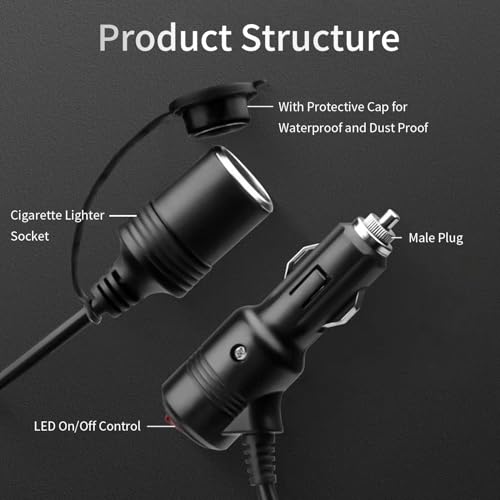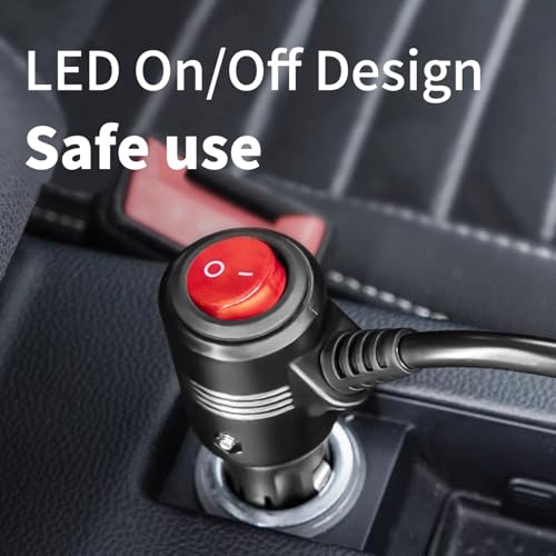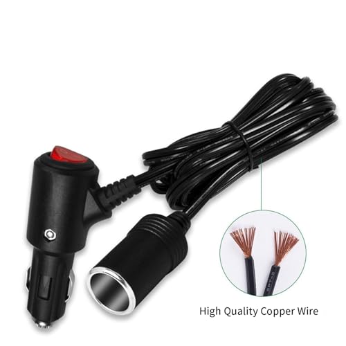 Hohe Qualität: unser Zigarettenanzünder-Verlängerungskabel ist aus PVC-Material, flexibel, hochtemperaturbeständig, korrosionsbeständig, lange Lebensdauer • Sichere Nutzung:Zigarettenanzünder Stecker mit eingebauter 10A-Sicherung bietet Schutz vor Überlastung und Kurzschluss. Rote Netzkontrollleuchte, die bei Betrieb leuchtet, um den Verbindungsstatus zu überprüfen • Zigarettenanzünderkabel mit Ein/Aus-Schalter: Mit unserem Zigarettenanzünder Verlängerungskabel mit Ein/Aus-Schalterfunktion können Sie die angeschlossene Last ganz einfach steuern, ohne den 12-Volt-Zigarettenanzünder aus der Steckdose ziehen zu müssen, was die Nutzung einfacher und sicherer macht. • BREITE ANWENDUNG: Weit verbreitet für die Stromversorgung von Fahrzeugen, GPS, Mobiltelefonen, Kameras und MP3s. Geeignet für alle DC 12V-24V Schiffsboote, Boote, Mäher, Traktoren, Autos usw.