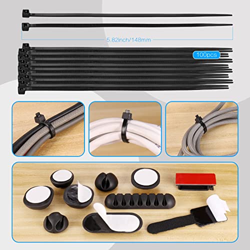 Zocipro 188 Teiliges Kabelmanagment Kit,Kabel Management für Schreibtisch,4 Kabelhülsen mit 52 selbstklebenden Kabelclips, 10 Kabelbinder, 20 Wandkabelbinder, 2 Rollen und 100 Schnellkabelbinder