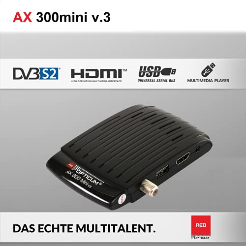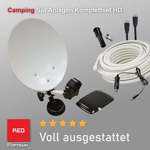 SAT KOMPLETTSET Das Satellitenschüssel Komplettset mit HD-Receiver I Fernbedienung I Single LNB I 35cm Antenne I HDMI Kabel und weiterem Sat Zubehör ist ideal für Camping oder den Balkon geeignet • RED OPTICUM AX 300 MINI V3 Der digitale Satelliten-Receiver HD-TV überzeugt mit externen IR Sensor inkl. LED-Display, vielen nützlichen Funktionen, USB-/ HDMI-Anschluss und einfacher Bedienung • GESTOCHEN SCHARF Genieße beste HD-Qualität mit der Mini Sat Anlage von RED OPTICUM. Das Camping TV Set mit DVB-S2-Receiver eignet sich zum Empfang aller frei ausgestrahlten TV- und Radioprogramme • OPTICUM SINGLE LNB Der HD-TV und 3D fähige LNB 1-fach punktet mit einem geringen Rauschmaß von nur 0.1dB I Eingangsfrequenz: 10,7 – 12,75 GHz I Polarisation: Linear H/V und ist zudem 100% wasserdicht • AN ALLES GEDACHT Hartschalenkoffer – Feedhalter für LNB – Masthalterung – Saugfuss – Wasserwage – Kompass – Kabelring 10m – zwei F-Stecker mit Wetterschutztülle werden zusätzlich mitgeliefert