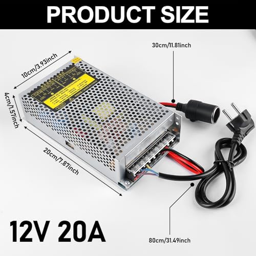 Schaltnetzteil 12V 20A Transformator, KFZ Netzadapter AC 240V DC 12V 20A 240W Schaltnetzteil Schaltwandler, Auto Spannungswandler Schaltnetzteil für Auto Kühlbox, Reifenfüllgeräte, LED-Geräte