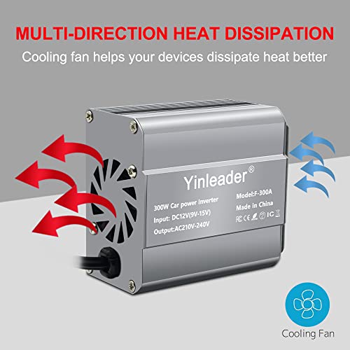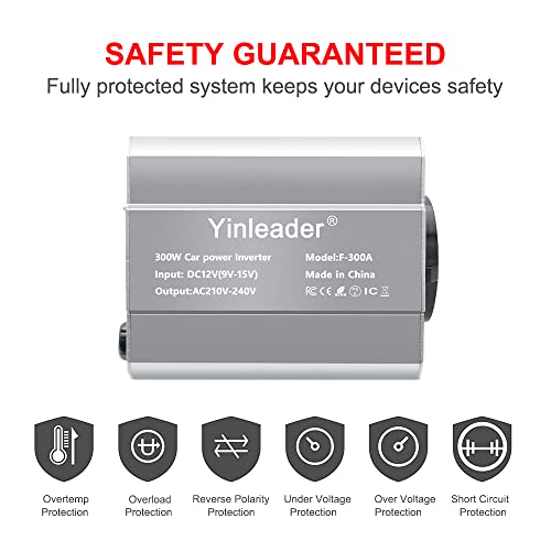 Yinleader Wechselrichter 12V auf 230V 300W 1 EU-Steckdosen 2 USB KFZ-Spannungswandler