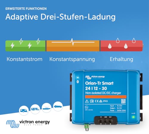 Victron Energy Orion-Tr Smart 24/12-Volt 30 Amp 360-Watt DC-DC Ladebooster, Nicht isoliert (Bluetooth)