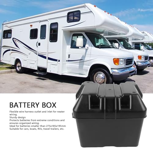[Flexible Kabelausgänge] Der batteriekasten mit flexiblem kabelaufbau ermöglicht geordnete und saubere verdrahtungen, und ist speziell für enthusiasten konzipiert. • [Verschiedene Fahrzeuge] Der batteriekasten eignet sich für batterien kleiner als 275x185x195mm und ist ideal für autos, yachten, wohnmobile und anhänger. • [Robust und Langlebig] Hergestellt aus hochwertigem abs-material mit einer stoßfesten leistung von bis zu -20ºf (-28ºc), widersteht gas, sonnenstrahlen und öl und gewährleistet haltbarkeit in rauen umgebungen. • [Einfache Installation] Die verbesserte gestaltung ermöglicht eine einfache und robuster installation, schützt batterien vor extremen bedingungen und sorgt für eine organisierte verkabelung. • [Komfortable Montage] Vorgebohrte interne führungslöcher ermöglichen eine bequeme installation ohne batteriebänder. das neue gurtbandsystem ist ebenfalls für robustere, anspruchsvollere installationen verfügbar.