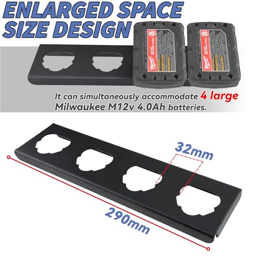 otuiaim Wandhalterung für 4 Akkus kompatibel mit Bosch 12V / Milwaukee 12V / Makita 12V Bohrmaschinen, verstärkter massivem Stahl Akkuhalter Universal für Werkzeugakku, Montage an Lochwänden & Wänden