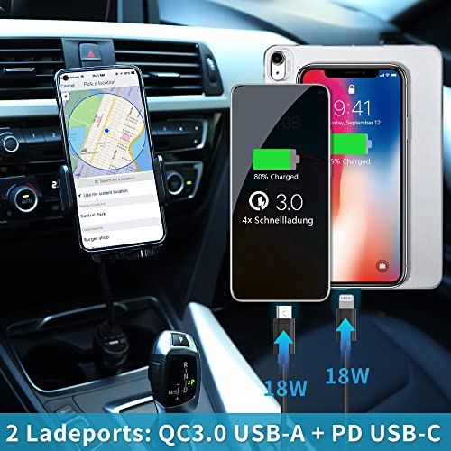 SOAIY 3in1 Universal Auto Handyhalterung Schwanenhals mit Ladefunktion 2 Ports QC3.0 PD Schnellladung USB Kfz Ladegerät 38W 12V/24V Zigarettenanzünder Netzteil mit LED Spannungsanzeige für Smartphones