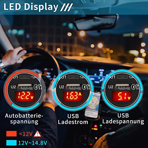 - Zwei 18W Ports liefern QC3.0 USB-A und PD USB-C, ermöglichen gleichzeitiges Laden; LED-Spannungsanzeige; Navigation am Smartphone komfortabel.